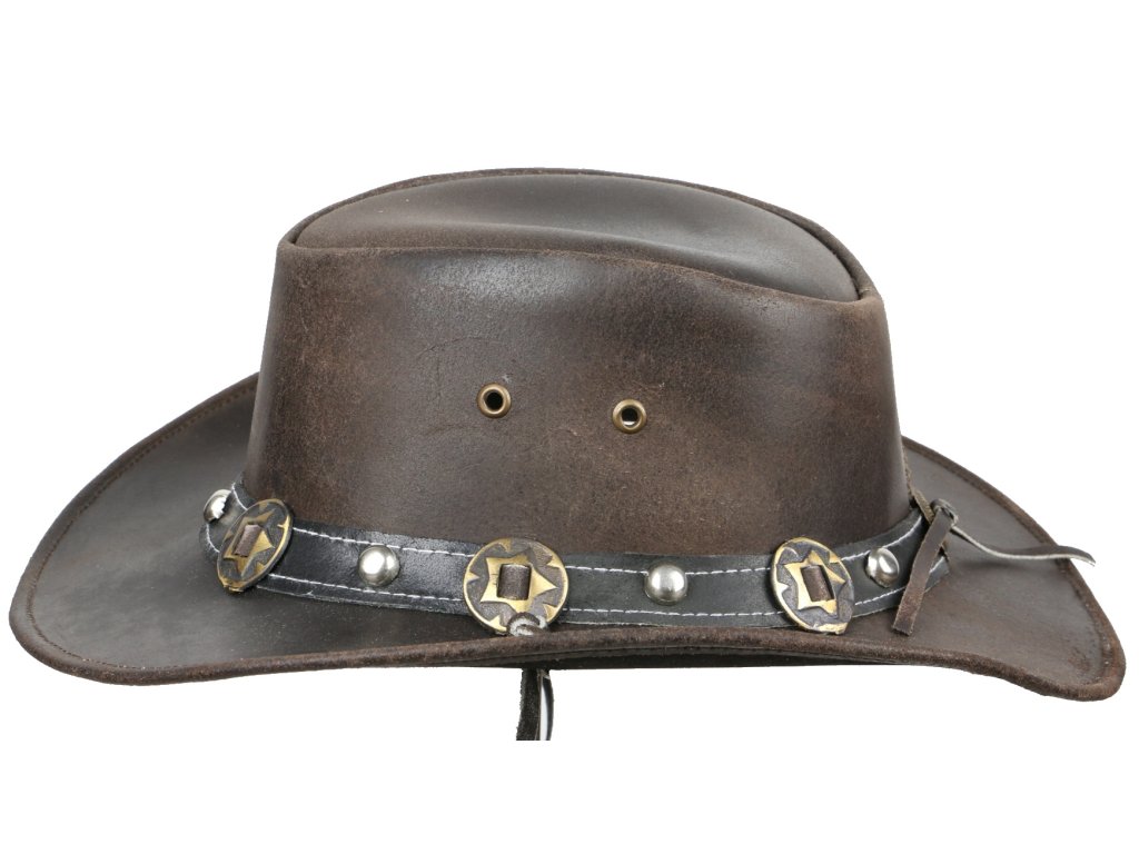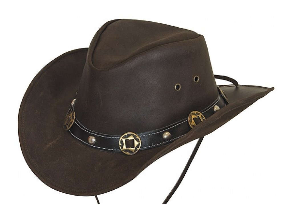 Hovězí impregnovaná kůže je odolná vůči počasí. Součást klobouku je praktický kožený řemínek s velmi snadným ovládáním, který lze lehce odejmout . Je vybaven větracími očky pro snadné odvětrání v horkých dnech.