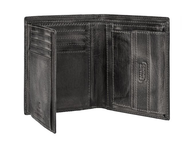 Kožená peněženka na výšku. 2 přihrádky na bankovky s utajenými 5 přihrádkami na karty. Kapsička na drobné se zapínáním na patent uvnitř s malou přihrádkou. 8 přihrádek na karty nebo vizitky.1 přihrádka se síťkou. Dalších 6 přihrádek navíc.